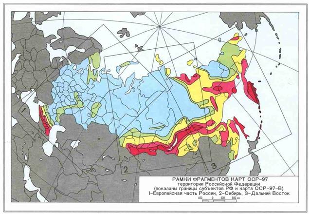Рис. 3. Общее сейсмическое районирование Российской Федерации