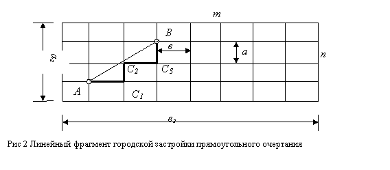1. При заданной площади фрагмента городской застройки АГ и количестве продольных улиц m в силу (1) оказывается заданной и ширина квартала а.
