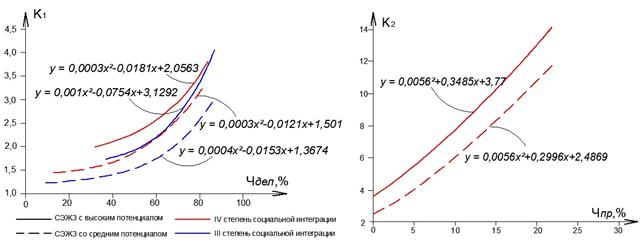 Формирование на территории интегрированного соседства И.2, содержание в котором жилья социального типа минимально, даже при использовании подземного пространства, не дает желаемого эффекта (Тк=0,6), т. к. значительно возросшая численность населения и площадь жилого фонда снижают показатель обеспеченности территорией, хотя показатель жилищной обеспеченности имеет достаточно высокое значение П2=30 м2/чел.