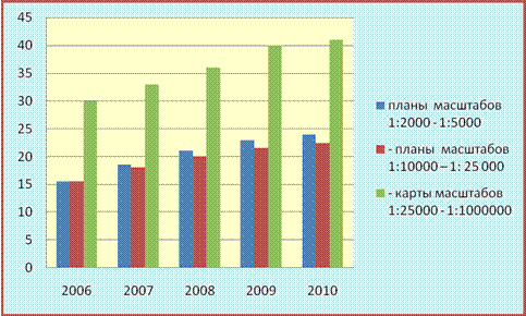 Как показывает анализ, объем видов продукции и услуг, которые несут производный характер, составляет около 90 % от всей продукции на рынке картографо-геодезических работ и услуг.