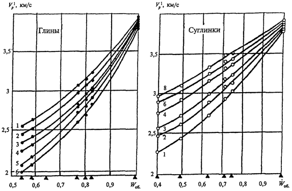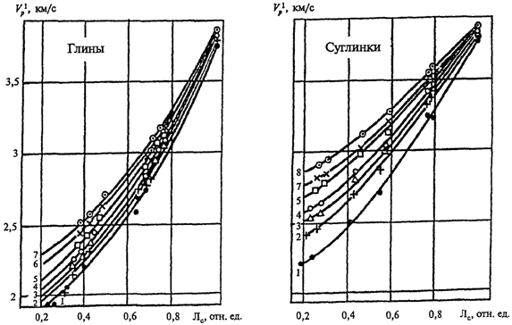 │влажности (по │скелета ро, │дольных волн │ро = 1,013V - 0,390 │