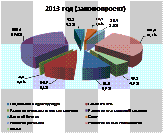 Наиболее значительные объемы бюджетных ассигнований ФЦП в 2013 году (в сумме 762,5 млрд. рублей, или 76,3 % общей суммы расходов на ФЦП) предусмотрены по направлениям: «Развитие транспортной системы» (37,1 %), «Развитие высоких технологий» (30,2 %) и «Безопасность» (9,1 %).