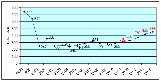 С 2011 по 2015 годы указаны контрольные цифры планируемого увеличения ввода жилья согласно принятой Республиканской целевой Программы «Жилище».