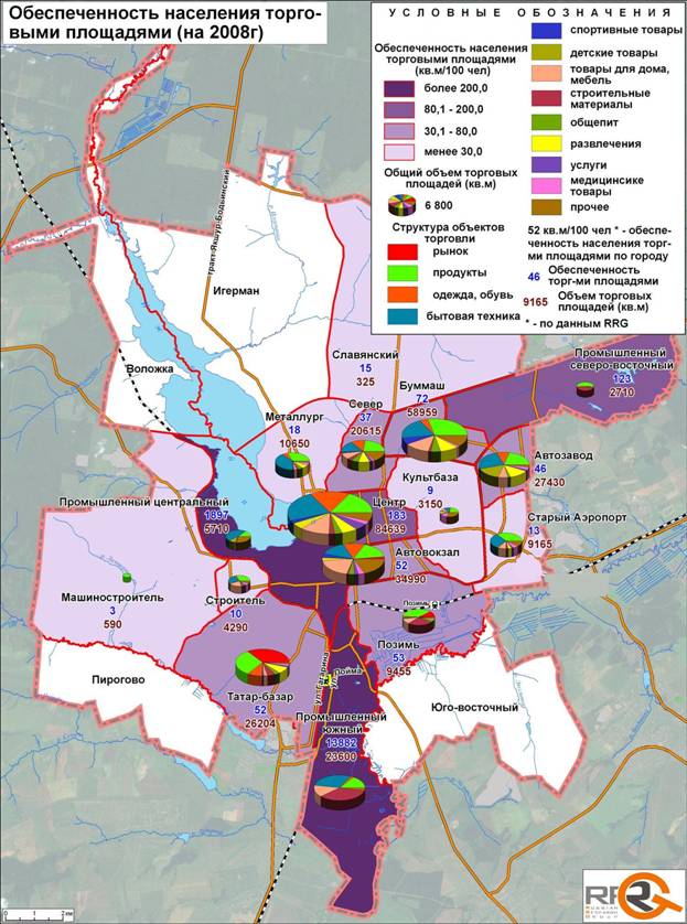 Диаграммы | Диаграмма 1. Оборот розничной торговли на душу населения в некоторых регионах РФ в 2007 году. Диаграмма 2. Прирост оборота розничной торговли на душу населения по некоторым регионам РФ, 2007 год по сравнению с 2006 годом, % Диаграмма 3. Рост розничного товарооборота в г. Ижевске Диаграмма 4. Структура торговых площадей г. Ижевска Диаграмма 5. Объем торговых площадей по концептуальным торговым центрам Диаграмма 6. Обеспеченность GLA на 1000 человек по некоторым городам РФ Диаграмма 7. Рост общей и торговой площади концептуальных торговых центров г. Ижевска Диаграмма 8. Виды товаров, которых не хватает в городе, по мнению жителей г. Ижевска Диаграмма 9. Виды развлекательных/спортивных заведений, которых не хватает в городе, по мнению жителей г. Ижевска |
