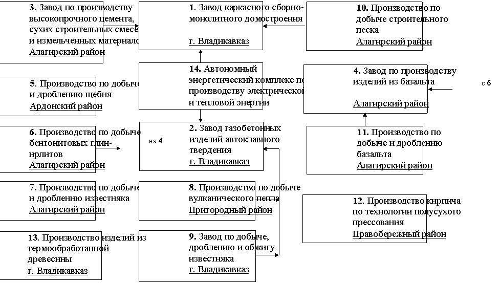 2.2. Производственный блок Комплекса включает группу сырьевых и перерабатывающих технологически связанных предприятий, определенных исходя из необходимости производства широкого ассортимента строительных материалов, наличия производственных площадей, инфраструктуры, логистики транспортных и товарных потоков, намерений собственников к сотрудничеству с инвесторами.