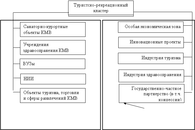 Это объясняется как самой природой региона КМВ, где исторически сложилась благополучная внутренняя среда для развития кластеров: рекреационного, торгово-логистического, а также АПК и инфраструктурного, который бы обеспечил прочие кластеры необходимыми элементами для их развития, так и стратегией развития данного региона в качестве особой экономической зоны.
