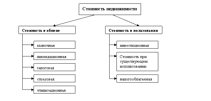 Стоимость в обмене характеризует способность объекта недвижимости обмениваться на деньги и на другие товары, носит объективный характер и лежит в основе проведения операций с недвижимостью на рынке: купли-продажи, передачи в залог, сдачи в аренду, внесение в уставный фонд предприятия и т. п.