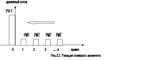 3) Функция текущая стоимость аннуитета позволяет определить текущую стоимость взноса, обеспечивающего в будущем получение заданных равновеликих поступлений (PMT) при известных числе периодов и процентной ставке (рис. 3.2).