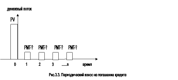 4) Т*)Функция периодический взнос на погашение кредита позволяет вычислить величину аннуитета при известной текущей стоимости аннуитета, процентной ставке и периоде (рис. 3.3).