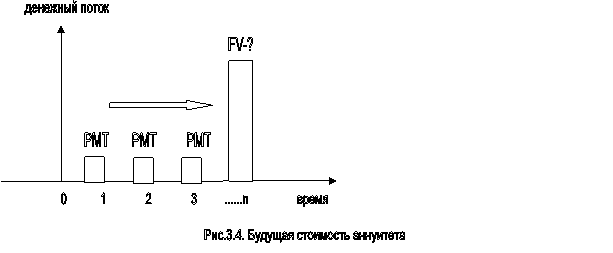 Предположим, на счете в начальный момент денежных средств не было, а затем каждый период на счет помещались одинаковые денежные суммы. Необходимо определить сумму, накопленную к конечному моменту времени. Наглядно такое накопление можно изобразить следующим образом (рис. 3.4):