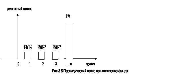 Предположим, в начальный момент времени на счете не было денежных средств. Необходимо определить размер регулярных равновеликих взносов, позволяющих накопить к конечному моменту времени сумму, равную заданной величине (рис. 3.5).