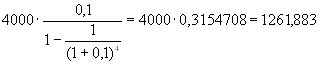 Пример 41. Срок ипотечного кредита 4 года, сумма – 4 000 тыс. руб, ставка – 10%. Необходимо составить схему погашения кредита.