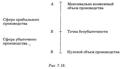 Предприниматель, выявляя минимально допустимый и максимально возможный уровни производства, определяет лишь границы, в которых производство может функционировать прибыльно (7.19).