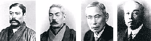 Четыре президента Ивасаки: (начиная слева) Ятаро (Yataro), Яносуке (Yanosuke), Хисайа (Hisaya), Койата (Koyata)