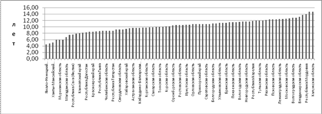 2. Введен коэффициент доступности регионального жилья, который более адекватно, по сравнению с используемым в ФЦП «Жилище» показателем доступности жилья, оценивает доступность жилья в регионе за счет учета средней обеспеченности жильем жителей региона. Получено аналитическое выражение для коэффициента доступности регионального жилья, что позволило показать степень разброса доступности жилья в разных регионах и построить рейтинг регионов.