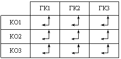 При матричной схеме работник подразделения КО1, являясь специалистом по компрессорам, может работать по нескольким направлениям (судовые, наземные, авиационные), сохраняя свою специализацию и имея постоянную загрузку, при этом административно он подчиняется начальнику КО1, а функционально – соответствующему главному конструктору. Аналогично для КО2, КО3.