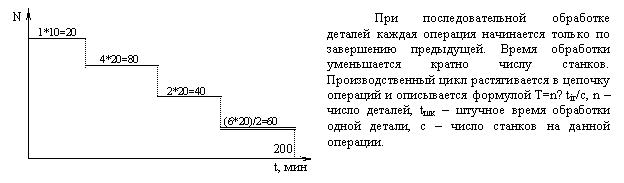 Существует три вида движения партии деталей в процессе обработки: последовательный, параллельный и последовательно-параллельный. Рассмотрим их на примере. Задача: