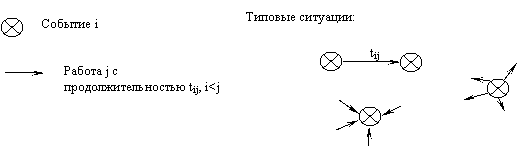 1. Каждая работа имеет начало и окончание (выходит из и входит в событие).