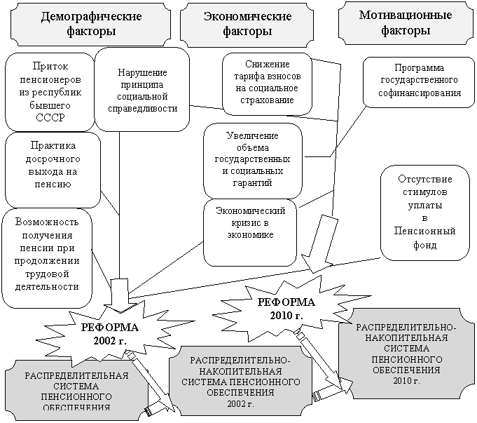 В экономическую группу факторов, обусловивших необходимость нового этапа пенсионной реформы в 2010 году, объединены: