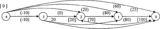 вершина jo = 0 является исходной. Последующие вершины jk, js (s>k) соединяются дугой (jk, js), длина которой:
