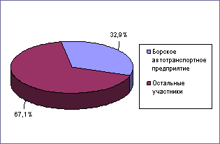 Основные игроки на рынке. Ввиду отсутствия в городе Бор деловой активности в секторе строительства коммерческой недвижимости основными игроками на рассматриваемом локальном рынке объективно являются не крупные фирмы – застройщики, а местный Комитет имущественных отношений городской администрации и бывшие советские предприятия, получившие нежилой фонд в ходе приватизации. В частности, «Борское автотранспортное предприятие», владеющее на Бору коммерческой недвижимостью общей площадью 7 квадратных метра (включая земельный участок), При этом 3,19% этой площади сдается предприятием в аренду.