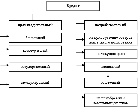 - на основе критерия "характер использования ссуды" произведена классификация кредитов, основу которой составляют производительные и потребительские формы кредита;