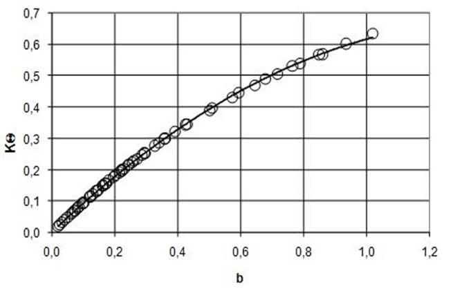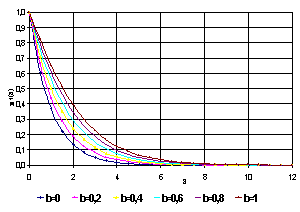 Рисунок 7 - Обобщенная кривая кинетики сушки зерна по данным опытов в зависимости от параметра b.
