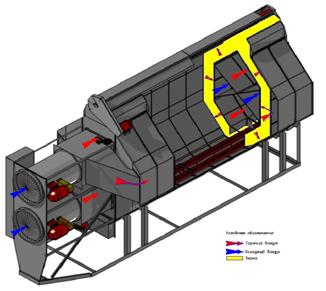 Рисунок 11 – Схема движения инвертированных потоков сушильного агента в зерносушилке