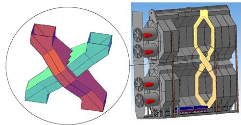 Рисунок 12 - Схема движения зерна в двухмодульной сушилке с бесприводным инвертированием (потока зерна).