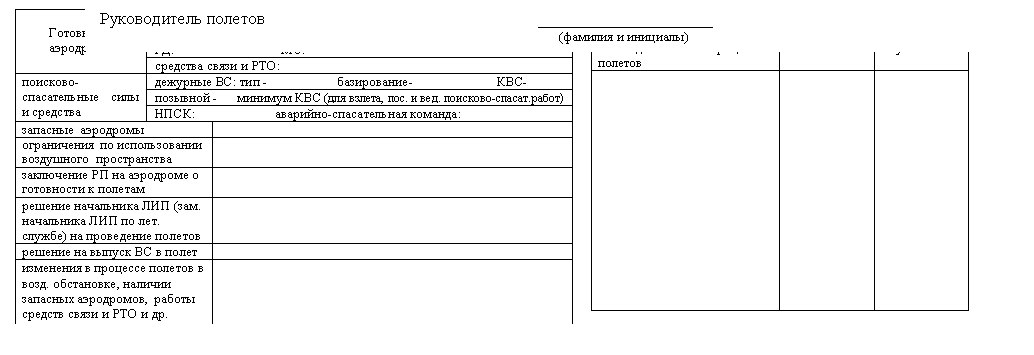 «Вылет разре-шаю» или «Запре-щаю» (указать причину), время взлета, аэродром первой посадки, эшелон (высота) полета, др. информация |