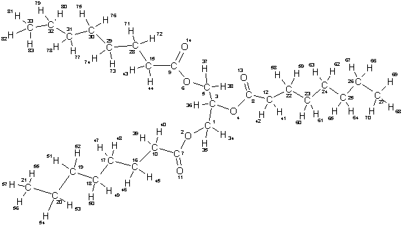 Для молекулы триглицерида норма градиента составила 0,000578 кДж/моль/ангстрем. Значение полной энергии молекулы триглицерида составило – -17 кДж/моль.