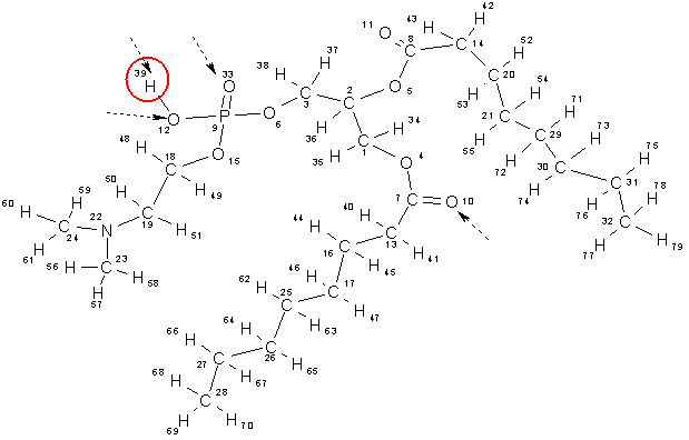Норма градиента фосфолипида составила 0,0001186 кДж/моль/ангстрем, а значение полной энергии – -8612 кДж.