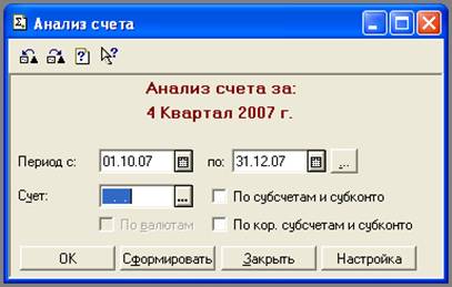 Рис. 2 Окно формирования документа «Анализ счета»
