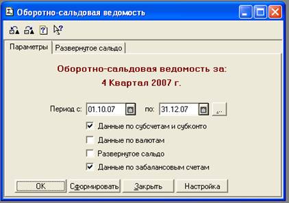 Рис. 3. Окно формирования документа «Оборотно-сальдовая ведомость»