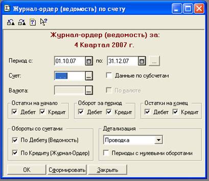 Рис. 4. Окно формирования документа «Журнал-ордер»