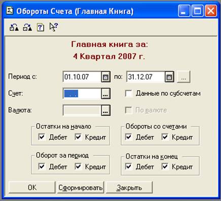 Рис. 5 Окно формирования документа «Главная книга»