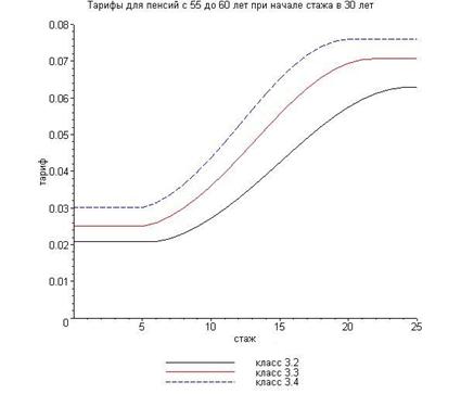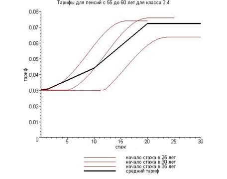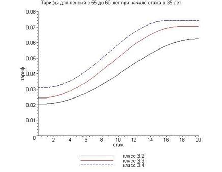 Тарифы для дополнительных пенсий с 55 до 60 по классу 3.4