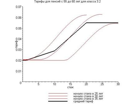 Тарифы для дополнительных пенсий с 55 до 60 по классу 3.2