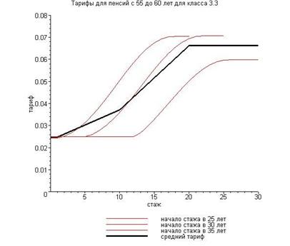 Тарифы для дополнительных пенсий с 55 до 60 по классу 3.3