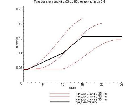 Тарифы для дополнительных пенсий с 50 до 60 по классу 3.4