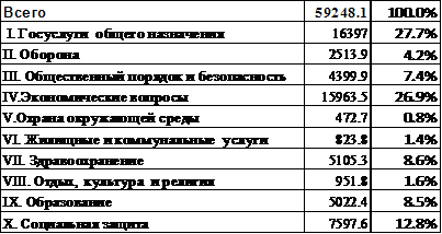 Расходы республиканского бюджета на 2010 г. планируются в размере 59,3 млрд. сом. Наибольшая доля расходов приходится на предоставление государственных услуг общего назначения (Таблица 6), на решение экономических вопросов и на социальную защиту населения.