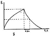 б – кривая ползучести и релаксации деформации для него