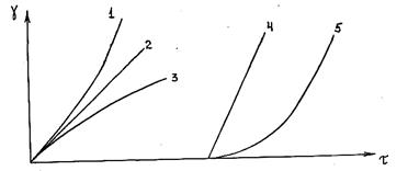 3 – дилатантное тело; 4 – тело Сен-Венана; 5 – псевдопластик,