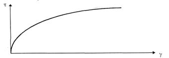 где τ0 – предел текучести, или предельное напряжение сдвига, ниже которого течения материала нет.