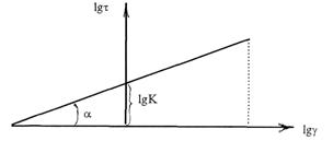 С помощью графика (рисунок 6.3) при γ = 1, lgγ = 0, находим значения k и n, lgk = lgn, то есть показатель консистенции численно равен значению напряжения сдвига при скорости сдвига 1.