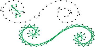 Длина стежков, которыми прошивается дуга, должна быть меньше половины дуги. Чем меньше длина стежка, тем тоньше изображение дуги.
