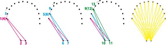 И далее аналогично. Обращаем внимание, что хорда должна сделать 2 круга.