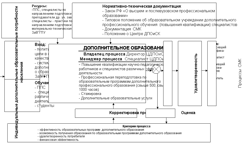 Цель процесса: удовлетворение индивидуальных дополнительных образовательных потребностей личности