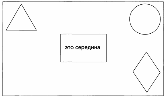 где правая сторона, а где левая; где середина; что находится справа, что слева; что сверху (над), что снизу (под); где правый верхний угол, где правый нижний угол, где левый верхний угол, где левый нижний угол.