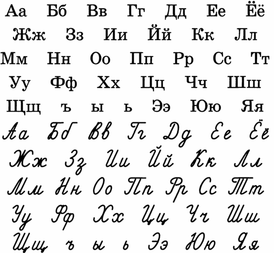 • Все буквы пишутся в строке. Большие — в большой строке, маленькие — в маленькой.